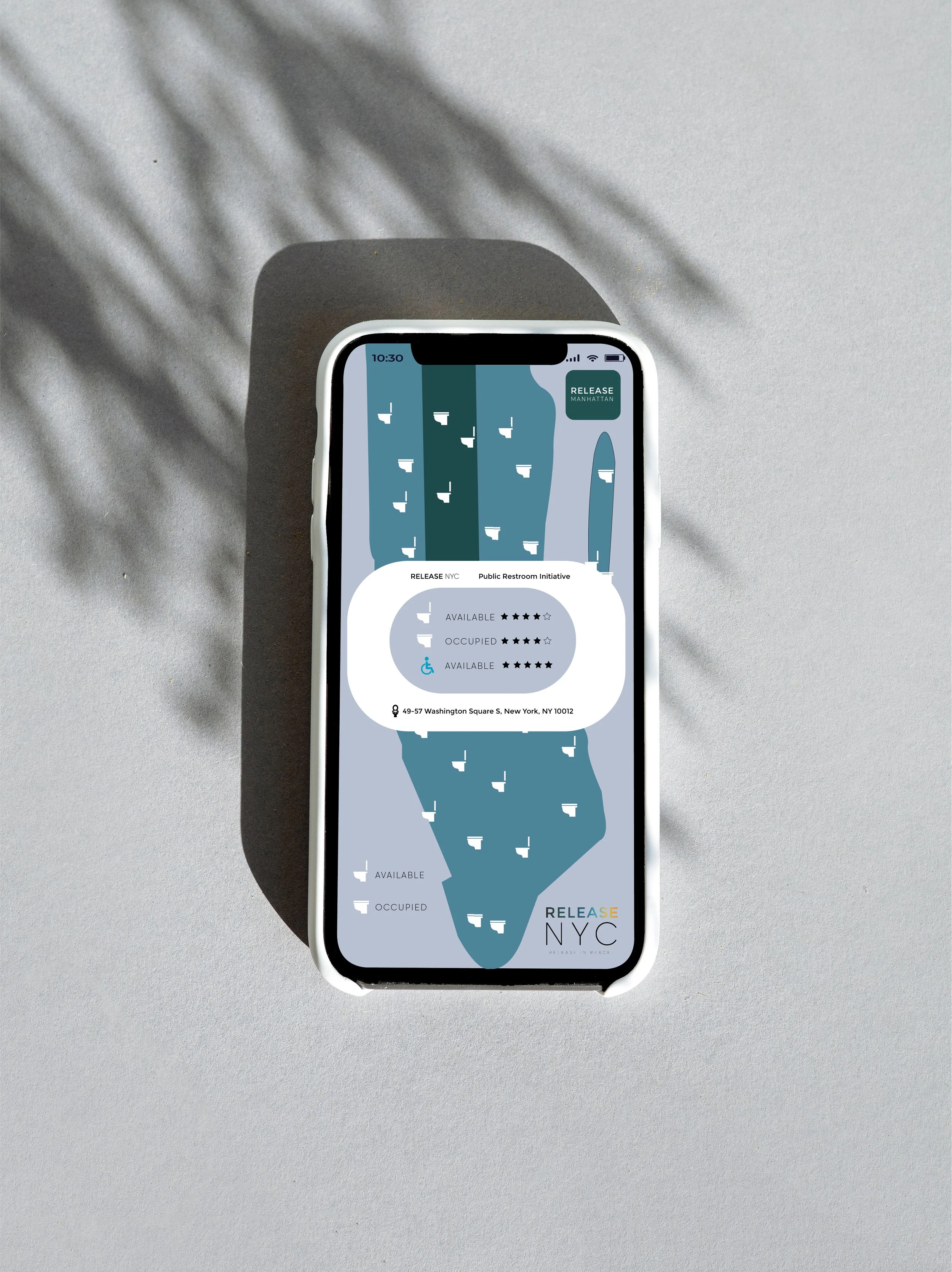 Release NYC is a social change project that helps New Yorkers have more accessibility to public restrooms throughout the Five boroughs. With a sleek space to release and an easy-to-use application, website, and map: all tourists and New Yorkers can navigate the city to find a place to go number one and two.